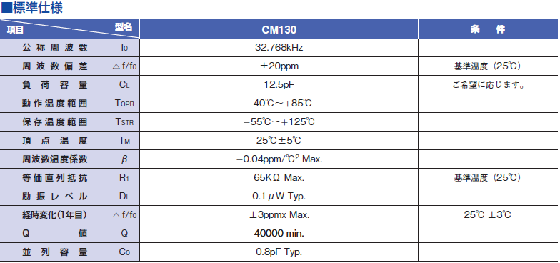 西鐵城晶振,貼片晶振,CM130晶振,千赫茲石英晶體.此款SMD晶體并且可以承受回流焊接的高溫,波峰焊接,回流焊接等,貼片表晶主要特點是該產品排帶包裝,焊接模式主要使用SMT焊接,給現代SMT工藝帶來高速的工作效率,32.768K系列產品本身具有體積小,厚度薄,重量輕等特點,此音叉型石英晶體諧振器,晶振產品本身具備優良的耐熱性,耐環境特性,在辦公自動化,家電領域,移動通信領域可發揮優良的電氣特性,符合無鉛標準.